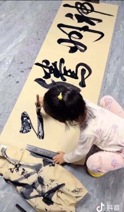 女童爸爸表示,自己平時有練書法的習慣,算是業餘的興趣,女兒自3歲時就開始接觸書法,「因為當時她會在我身旁搗亂,我索性就把毛筆給她,鼓勵她亂塗亂畫,寫著寫著也慢慢開始有模有樣,平時也談不上什麼書法」。