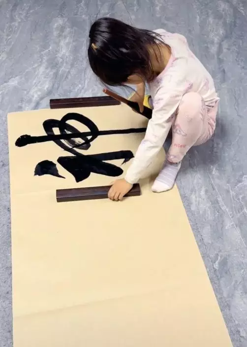 綜合內媒報導,寧夏銀川一名6歲女童近日因超強的「書法功力」在網上走紅。影片中,女童蹲在地上揮毫落紙寫下「神州騰飛」四個字,只見她落筆毫不猶豫,筆法遒勁有力,瀟灑大氣,完全不像6歲小孩的書法水平。