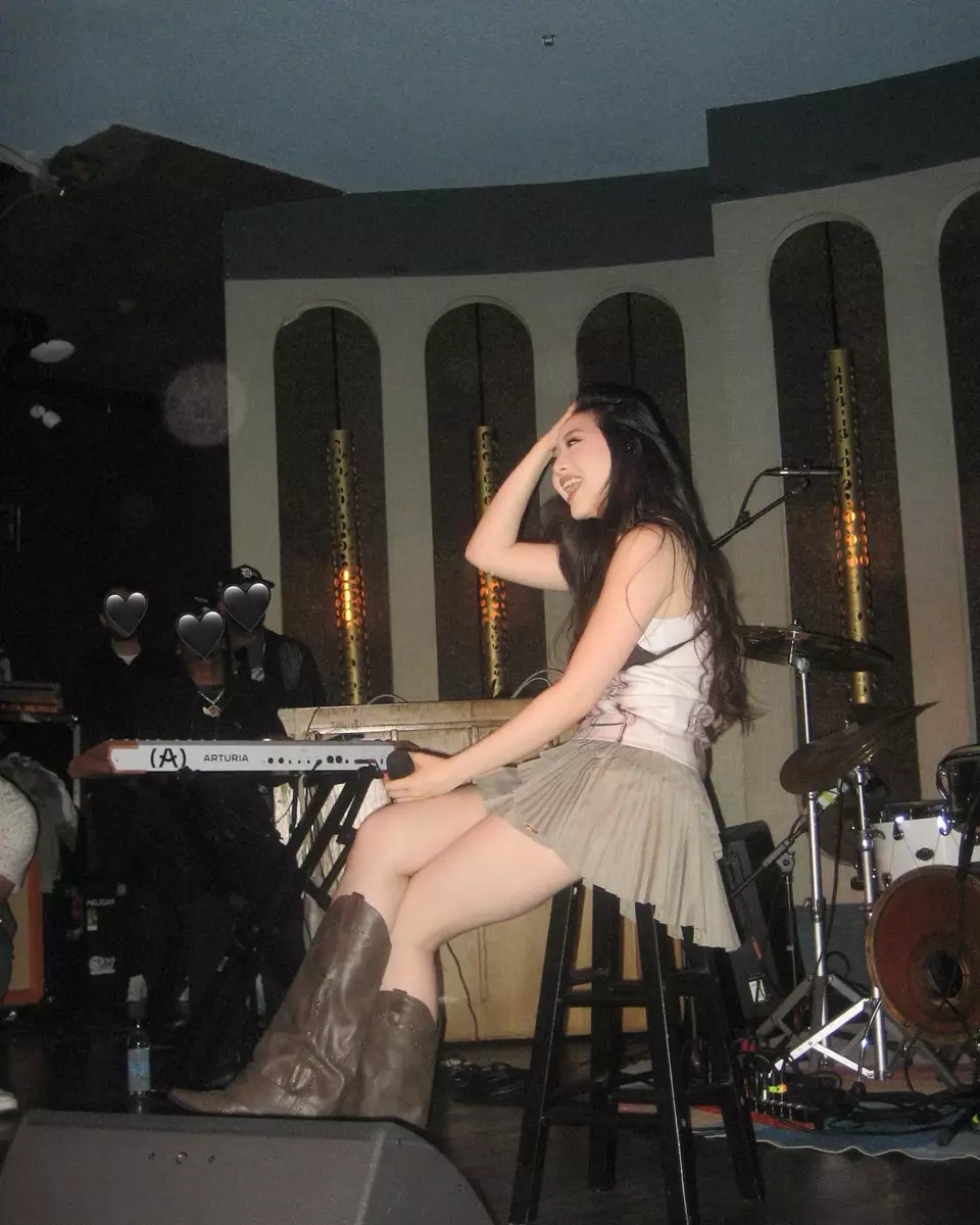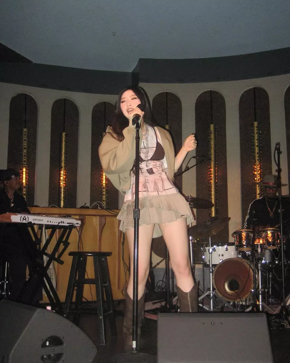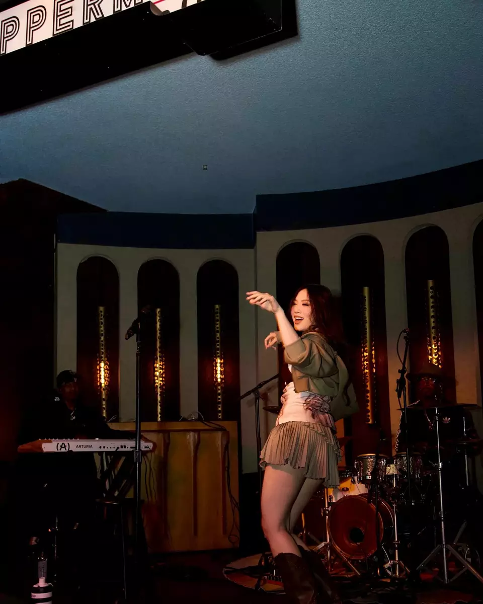 甄濟如在IG分享美國出道舞台的靚相,可見她唱了多首英文歌,不但狂飆超高音,又手舞足蹈揈頭扭腰,演出High爆,而且完全不像只出道了一年,好有大將之風!而她的打扮亦非常大膽,雖然有貼身背心打底,但比堅尼Top外穿,再搭配超短裙及長靴,冶艷又迷人,魅力無限,難怪台下觀眾個個都睇到歡呼又尖叫。