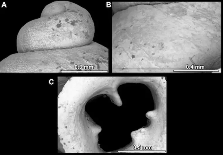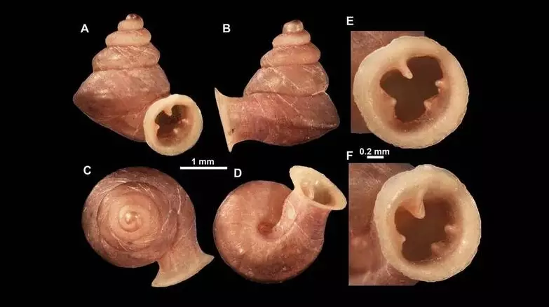 這種蝸牛殼長不到3毫米,屬於「微小蝸牛」(microsnail)範疇。其最顯著特徵是殼的螺紋呈現矩形棱角分明的形狀,與一般蝸牛常見的圓潤螺旋截然不同,呈現出立體派藝術中幾何抽象風格。此外,殼口內部結構複雜,具備多個齒狀屏障,推測可用於防禦天敵,且部分新物種的殼口甚至呈現上下翻轉,展現出蝸牛殼形態的多樣性與特殊進化。