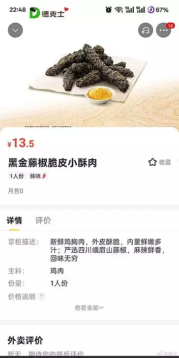 內地知名連鎖炸雞品牌德克士(Dicos)近日推出全新產品「黑金藤椒脆皮小酥肉」,黑色表皮以及形狀竟激似「排洩物」,令網民也戲稱「拉都拉不出」。