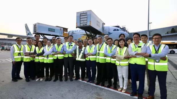 李家超讚揚機場員工以不懈努力和專業精神,讓機場持續獲評為全球最繁忙貨運機場,鞏固國際航空樞紐地位。(李家超社交網頁圖片)