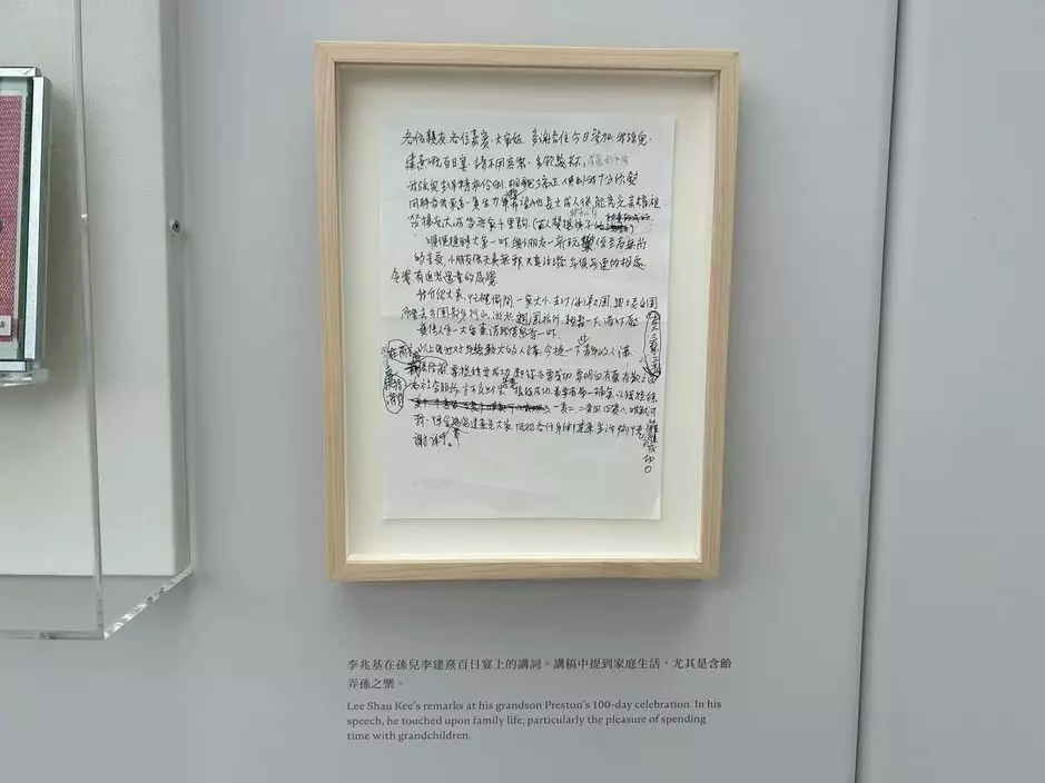 《李兆基博士紀念展—和光同塵》一連5日在中環舉行,圖為家人的悼詞。巴士的報記者攝