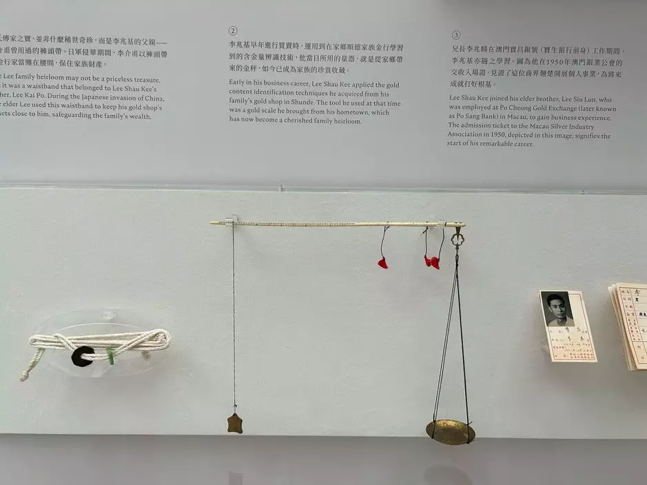 《李兆基博士紀念展—和光同塵》一連5日在中環舉行,圖為從順德家鄉金舖隨行的金秤。巴士的報記者攝