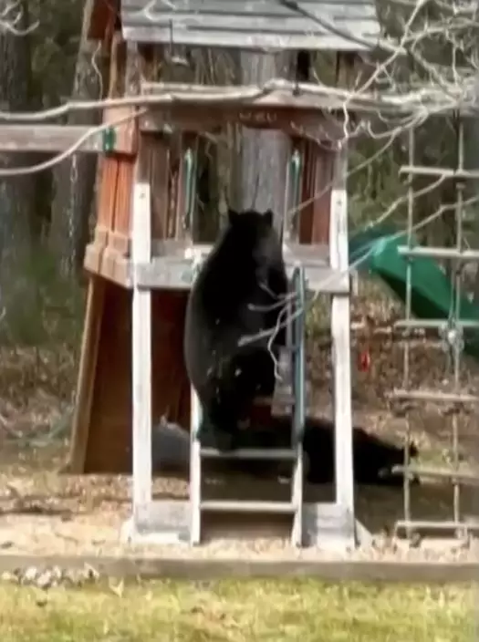 黑熊闖後院玩滑梯