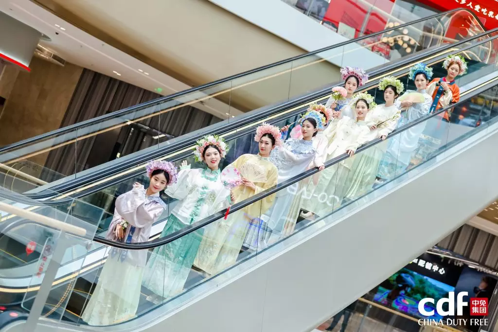 cdf 海口國際免稅城重磅推出首個國風美學空間——中免悅享花園,並設置三大互動打卡點 「花容苑」、「 鈴亭」、「花韻亭」,讓消費者購物的的時感受東方美美學魅力。 「花容苑」化妝師現場為顧客打造新中式妝容,傳遞方美美學自信,聯動小相館打印花卉主題照片,帶來沉浸式美學體驗。購五一假期期間,cdf 海口國際免稅城特別策劃國風牡丹花使簪花巡遊,活動現場花使與消費者進行合影互動並派發禮品,進一步傳遞非遺簪花的文化魅力。母親節期間將邀請國風樂團,現場演繹國風樂坊秀,消費者可邀請媽媽一起,享東一場新中式美學視聽盛宴。cdf 海口日月廣場免稅店打造繽紛花牆合影點,消春日好禮觸手可及。