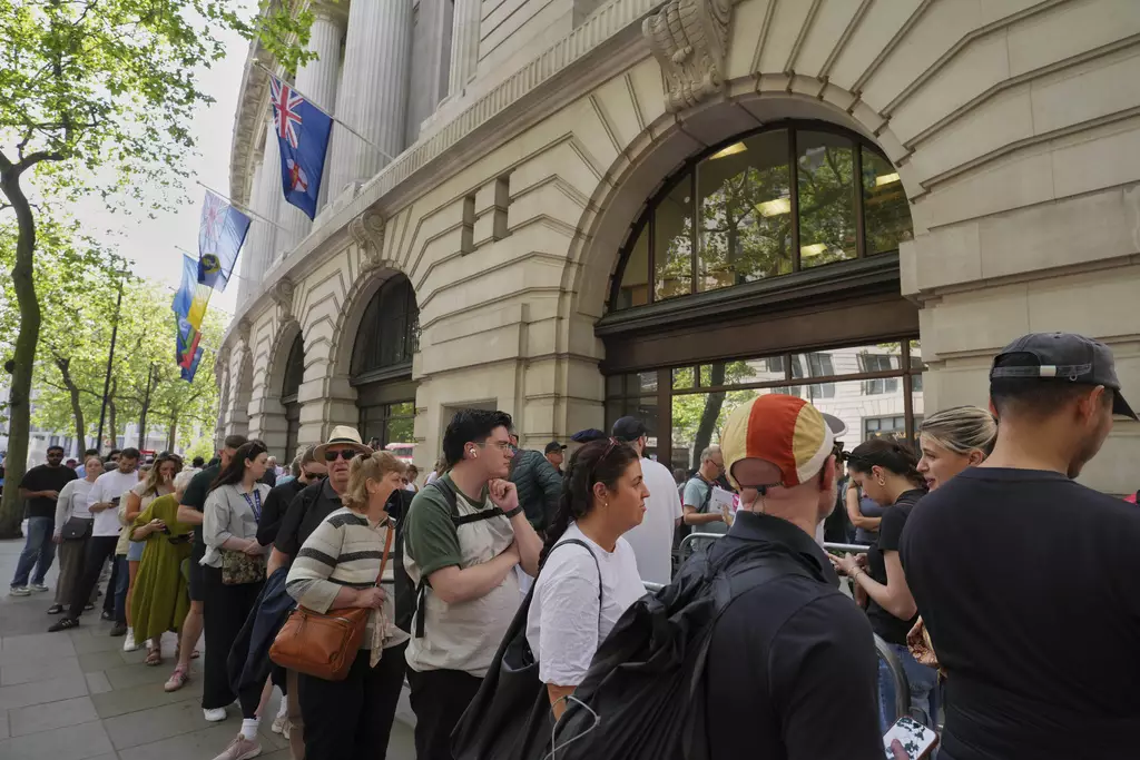澳洲選民在倫敦的澳洲駐英國高級專員公署門外排隊投票。AP圖片