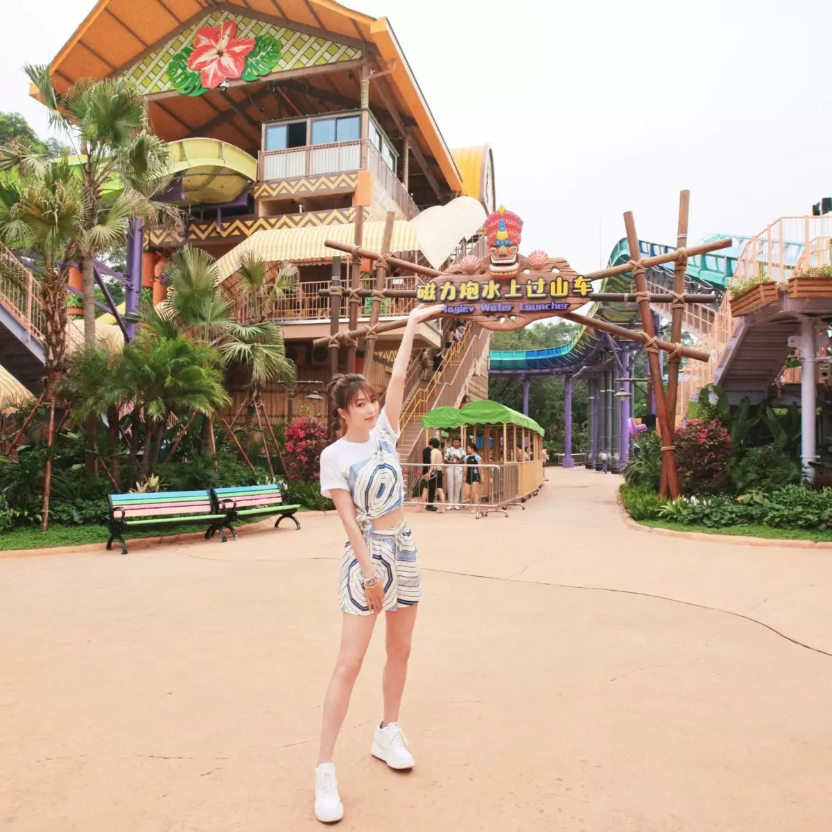 連詩雅在IG分享到內地水上樂園演出的靚相,並留言:「第一次來長隆水上樂園,第一次喺水上嘅舞台表演,一邊唱歌一邊感受到台下嘅觀眾喺水裏邊高漲嘅氣氛,好正!!!搞到我都好想跳落水玩埋一份,聽講佢哋啱啱加咗三個新設備,好似好刺激,下次有機會都要嚟試吓!」相中可見,連詩雅穿著小背心搭配短褲,大騷纖瘦的好身材,完全看不出剛為人母不久。