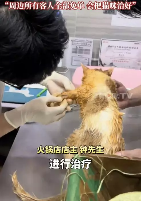 重慶火鍋店「天降」野貓掉進鴛鴦鍋中濺傷9名客人,店主承擔貓貓醫療費並暖心收養。