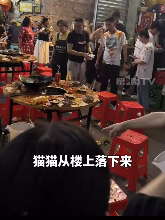 綜合內媒報導,重慶渝中區一間火鍋店於5月2日晚上發生一宗罕見意外。事發當晚正值晚餐高峰時段,火鍋店露天用餐區幾乎座無虛席。正當客人們都在用餐時,一隻野貓突從約三層樓高處墜下,正好跌入一口沸騰的鴛鴦鍋中,滾燙湯汁瞬間濺出,並波及鄰近兩桌顧客,共有9名顧客遭到燙傷。