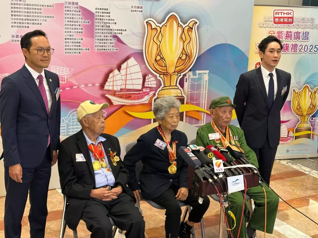 今年是「五四運動」106周年,以及中國人民抗日戰爭暨世界反法西斯戰爭勝利80周年,灣仔金紫荊廣場早上舉行升旗禮,大會向3名抗戰老兵致敬,分別是羅競輝、林珍、梁平。