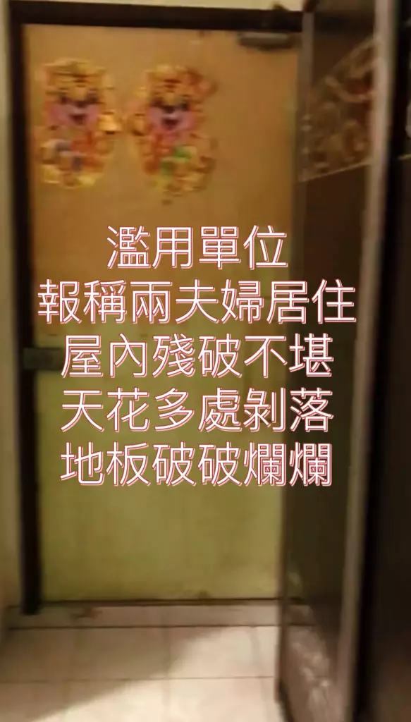 舉報者進一步揭露,該兄長在獲配自己的公屋單位後,不僅未交還原單位,反而將其違規出租給親友,並叮囑租客「有人按門鈴千萬不要應門」,企圖掩蓋違規事實。從舉報者上傳的單位內部照片可見,環境相當殘舊,天花多處剝落,地板破爛,且明顯有多人居住的痕跡。