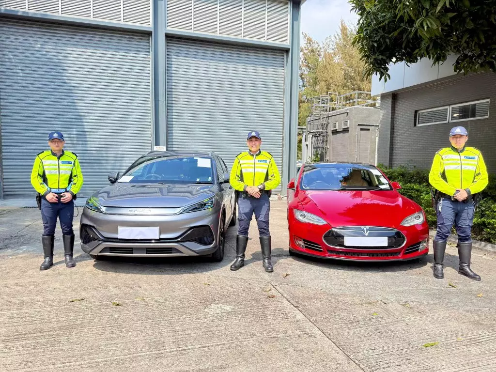 東九龍總區交通部執行及管制組突遣隊督察潘俊豪簡介案情,其背後是涉事的兩架私家車。