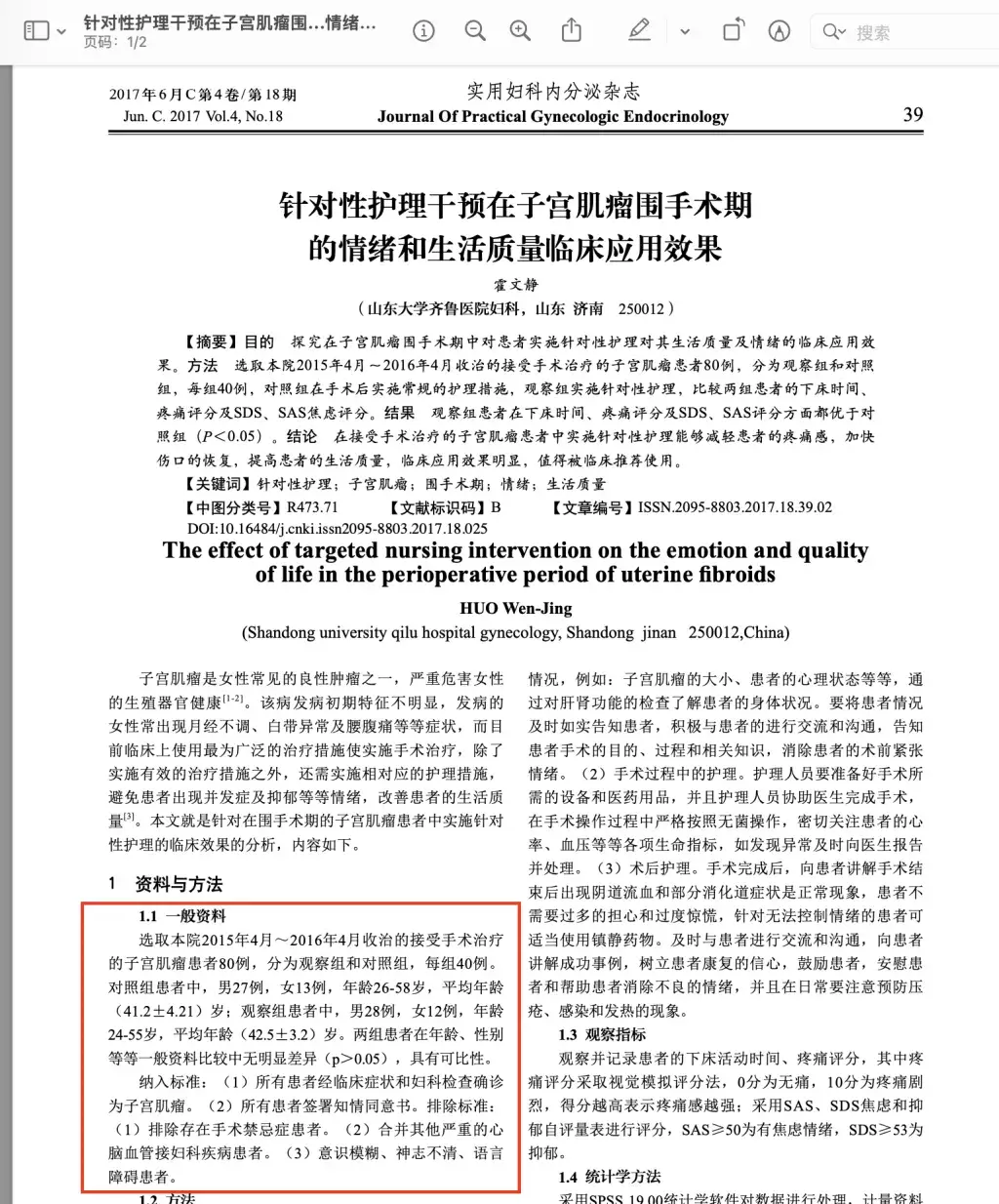 內地傳媒近日報道,網上瘋傳的問題論文題目為「針對性護理干預在子宮肌瘤圍手術期的情緒和生活質量臨床應用效果」,論文指在80宗子宮肌瘤手術中,有55名患者是男性。撰寫論文的是一名山東大學齊魯醫院婦科護士,曾於《實用婦科內分泌雜誌(電子版)》發表。