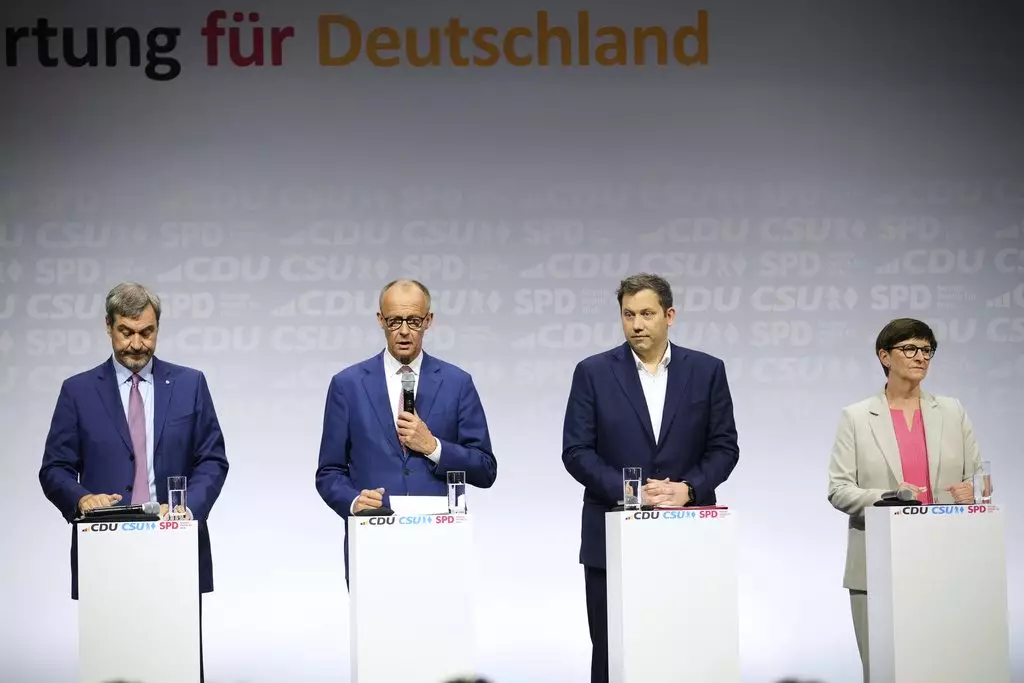 德國聯盟黨與社民黨在首都柏林簽署聯合執政協議,領導聯盟黨的總理候選人默茨預計將於星期二當選總理。