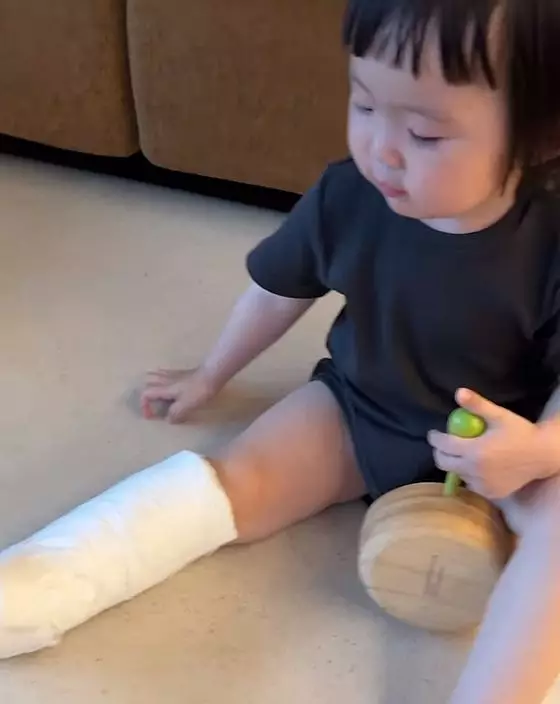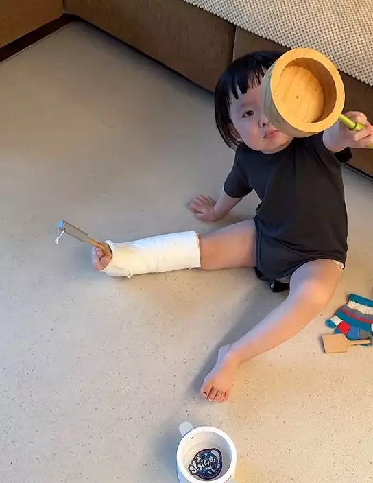 李璨琛2歲細女Sucy骨裂打石膏 用鑊鏟剷石膏畫面爆笑又惹人心疼