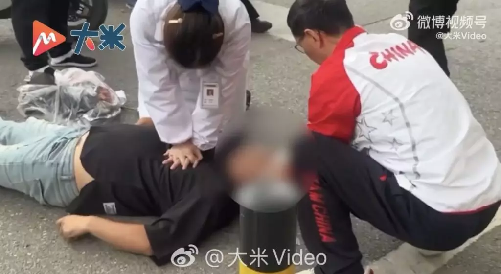 護士跪地搶救3分鐘 外賣員恢復自主呼吸