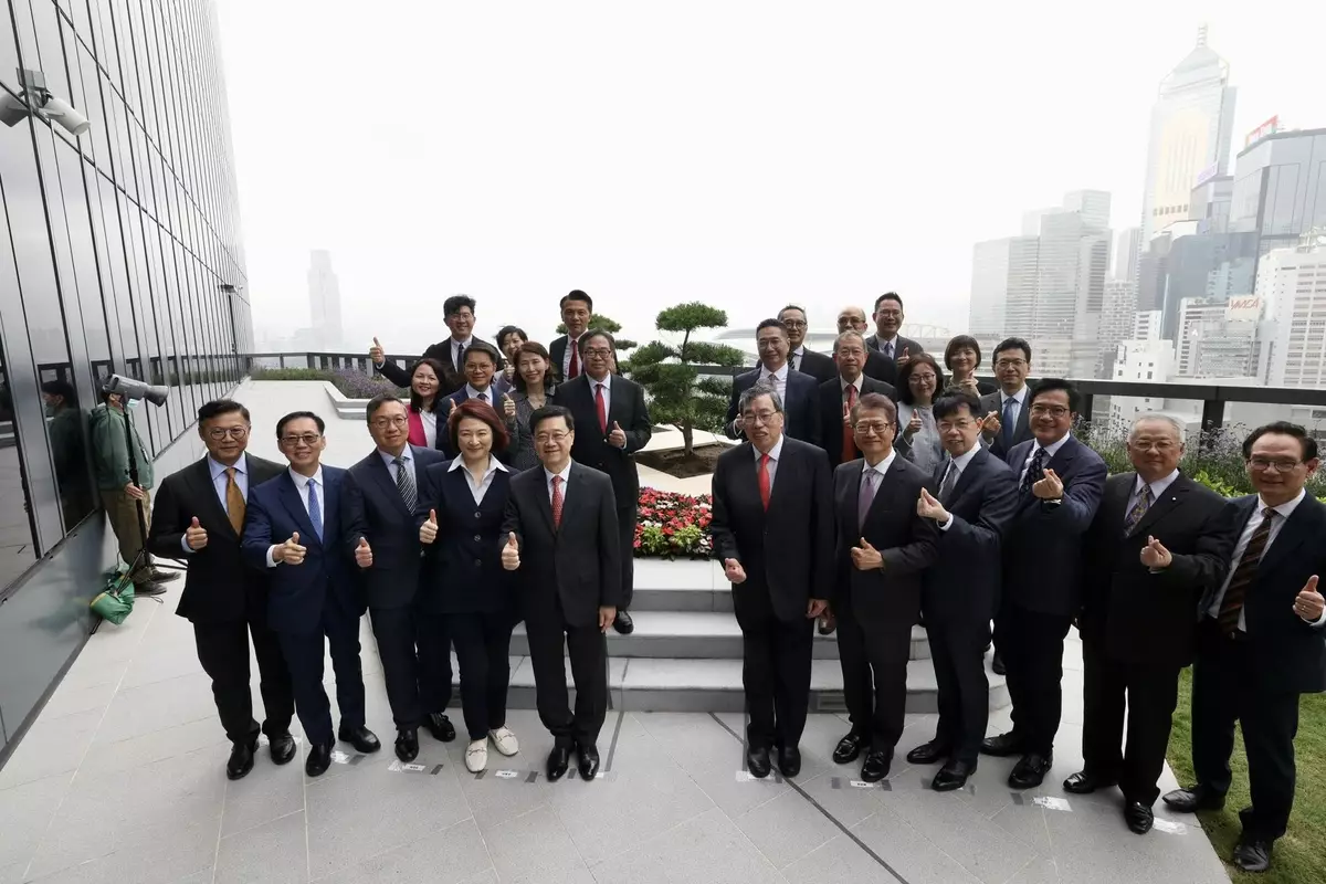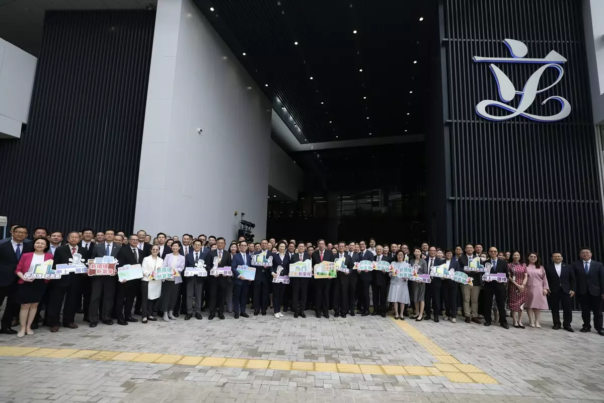 李家超在社交專頁表示,下午與一眾立法會議員出席立法會綜合大樓擴建主體工程竣工儀式,並與立法會主席梁君彥共同為大樓主入口外牆的「立」字徽號,主持亮燈儀式。