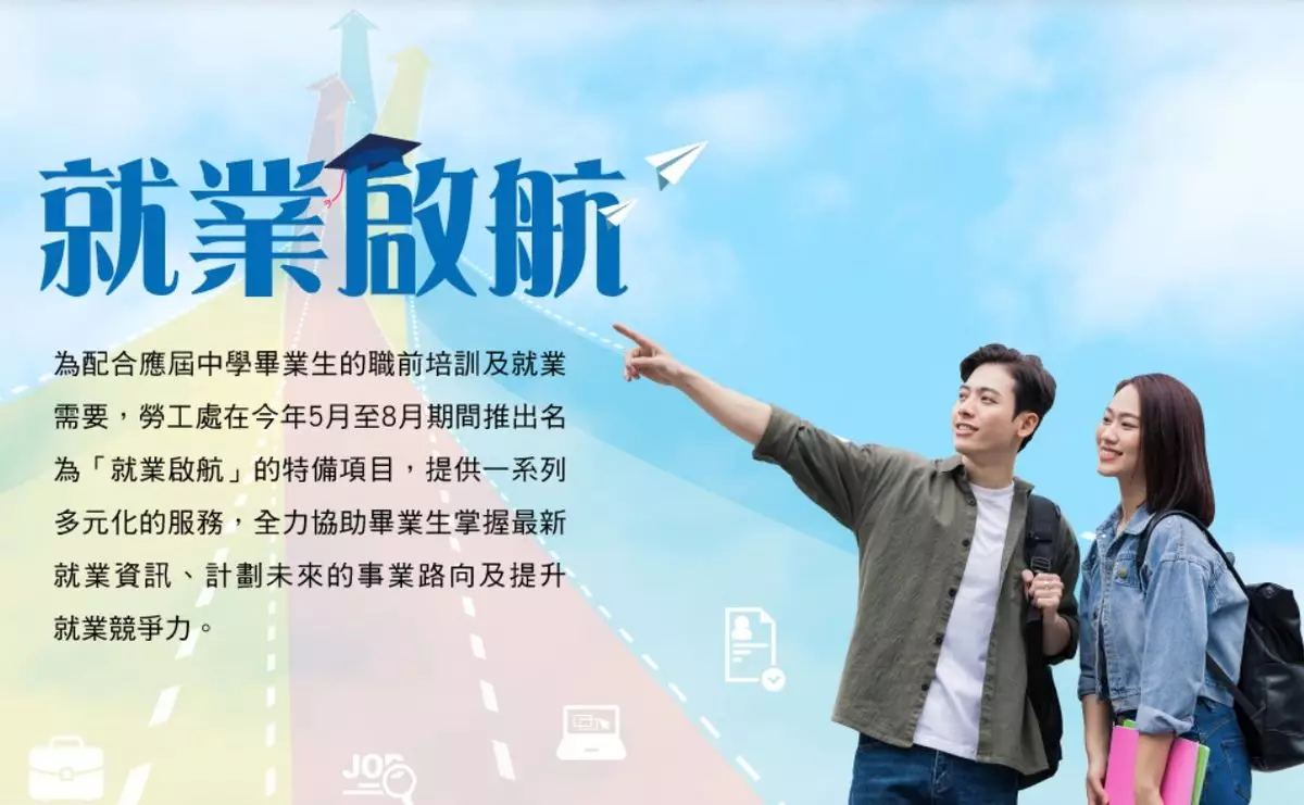 勞工處由本月至8月推出「就業啟航」特備項目,為有意投入職場的中學畢業生提供多元化職前培訓及就業服務,協助他們掌握最新就業資訊、計劃事業路向及提升就業競爭力,預計約有15000人參加。