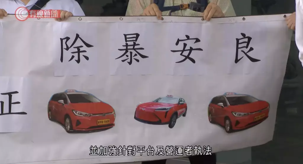 20多名的士業界人士向運輸署請願。有線新聞截圖