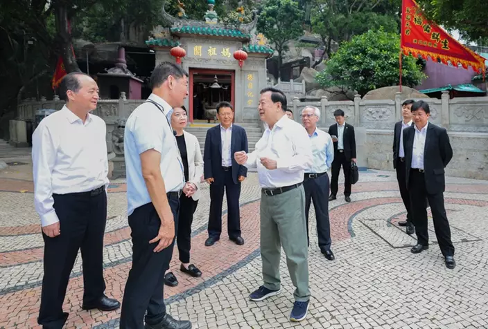 夏寶龍參觀考察媽閣廟。港澳辦圖片