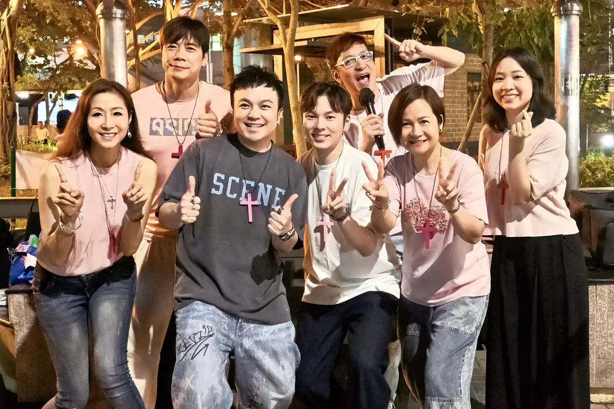 陳晉軒、沈宗賢及藝人之家成員(左起)雷晴雯、崔錦棠、劉港源、黃翠儀、林聞恩