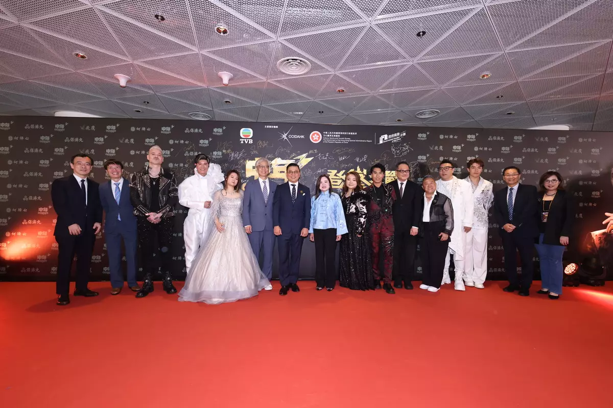 (左起)電視廣播有限公司集團首席技術官程哲、財務總裁李福來、占士丁丁、張與辰、陳芷盈、總經理 (商務營運) 蕭世和、行政主席許濤, JP、文化體育及旅遊局局長羅淑佩, JP、黃博、李金凱、文化體育及旅遊局文創產業發展處文創產業專員曾昭學,JP、電視廣播有限公司總經理 (節目內容營運)曾志偉、劉洋、趙浚承、助理總經理 (人力及製作資源) 謝偉光、助理總經理 (企業傳訊) 黃德慧