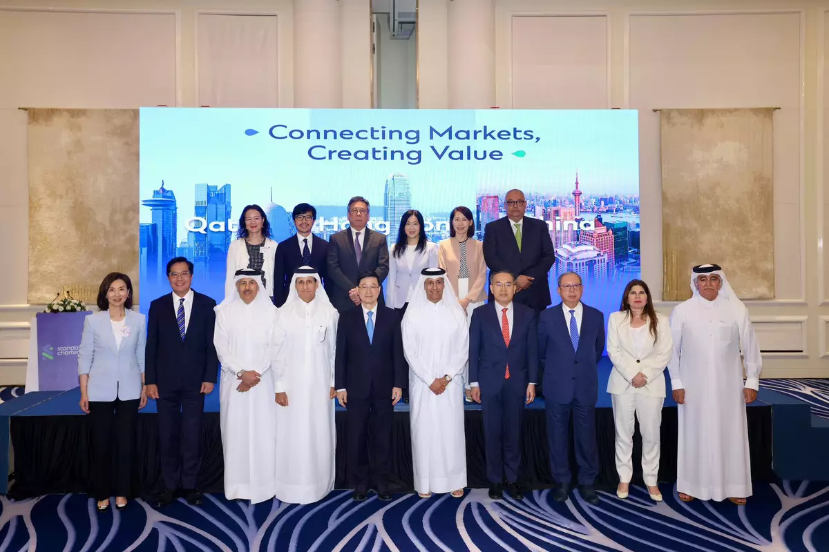 正在卡塔爾訪問的行政長官李家超,當地時間下午與代表團出席渣打銀行卡塔爾分行舉辦的市場簡介會暨午餐會。