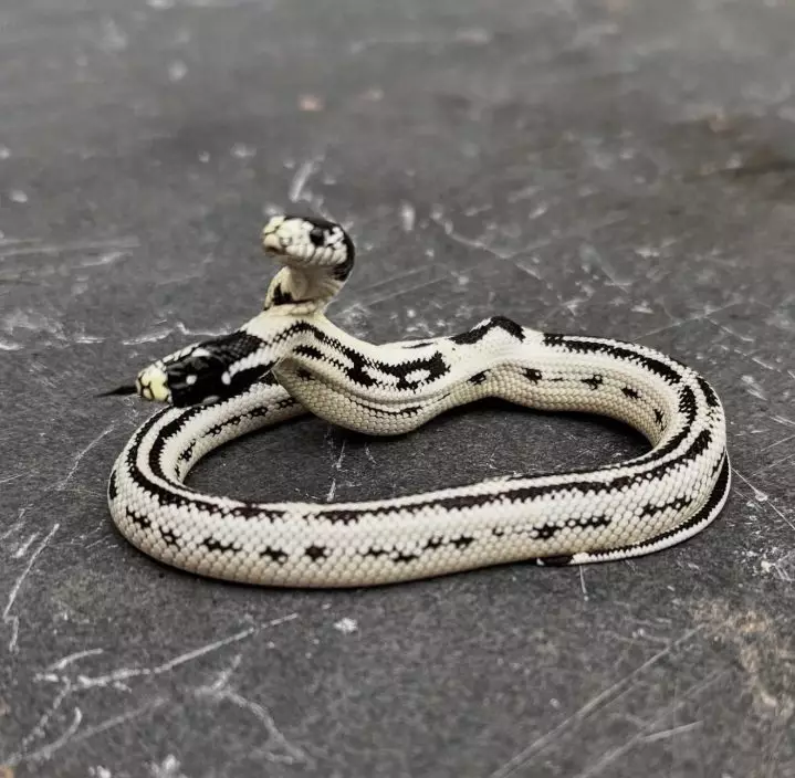 綜合外媒報導,美國加州柏克萊(Berkeley)一家專門販售爬蟲類寵物的店舖於去年9月孵化出1條擁有2個頭的加州王蛇,並為其中1個頭部名為「Angel」,另一個則名為「Zeke」。由於雙頭蛇生存率偏低,所以店家當時並未馬上公開消息。