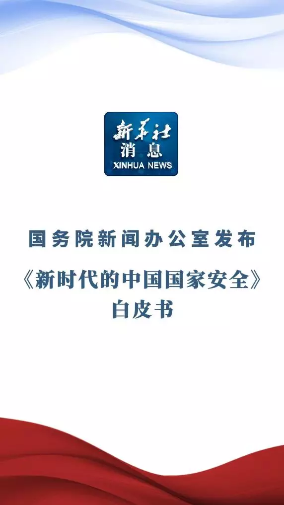 國務院新聞辦公室發布《新時代的中國國家安全》白皮書,指出中國統籌自身安全和共同安全,主張加強全球安全治理,踐行共商共建共享的全球治理觀,堅持真正的多邊主義,推動全球安全治理體系朝著更加公正合理的方向變革。