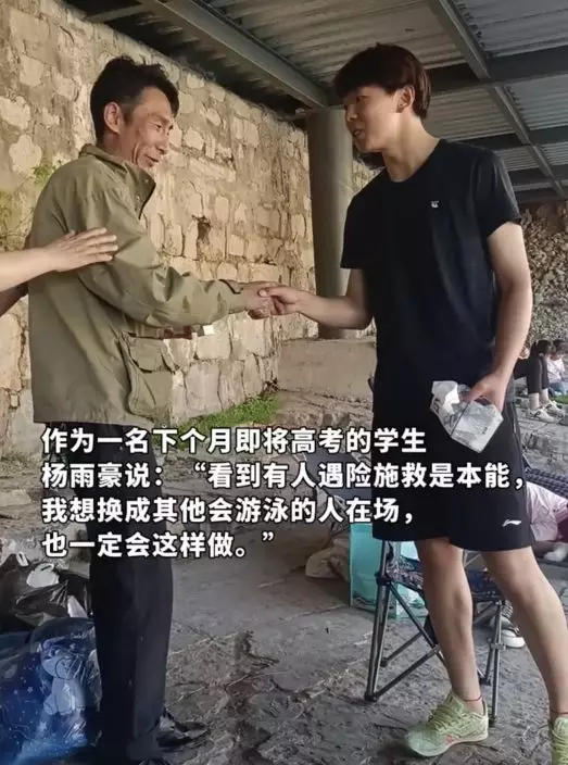 綜合內媒報導,山西陽泉一名18歲高中生楊雨豪於5月1日隨家人前往平定縣下盤石村桃和畔露營期間,突然聽見對岸傳來一陣呼救聲。楊雨豪循著聲源望去,目睹到一名男子在湍急河水中載浮載沉,岸邊群眾正焦急用樹枝嘗試營救,情況十分凶險。