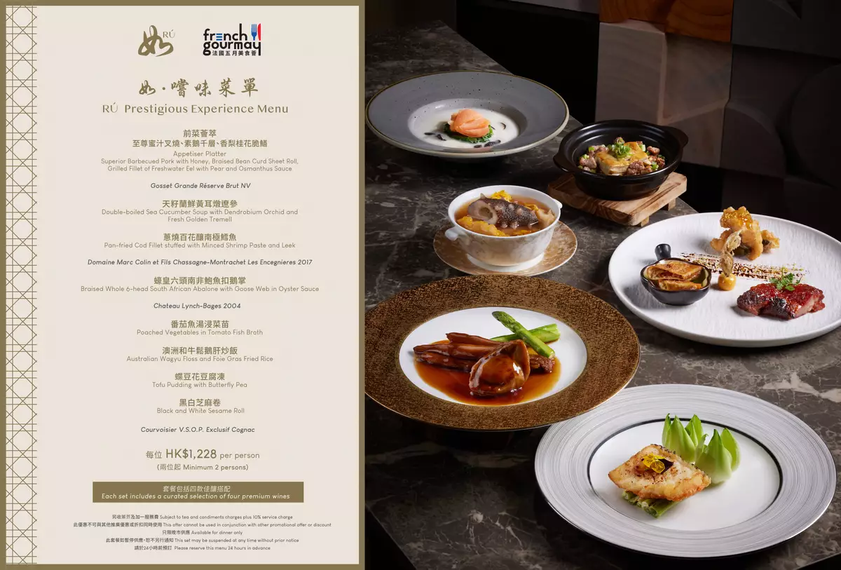 「如」中菜廳推出八道菜「嚐味菜單」,搭配4款法國頂級佳釀。