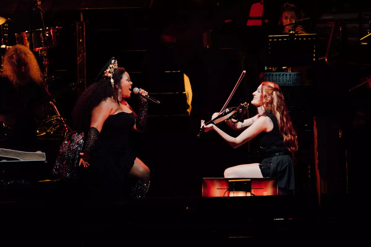 當演奏史詩式電影《帝國驕雄》時,耳熟能詳的激昂音牆後,迎來該片配樂的原裝女聲Lisa Gerrard(樂隊Dead Can Dance女主音)驚喜現身,獻上脫俗出塵的非凡天籟之音,掀起首個高潮。《星際啟示錄》表演時還加入了空中芭蕾,為演出推進至另一層次。