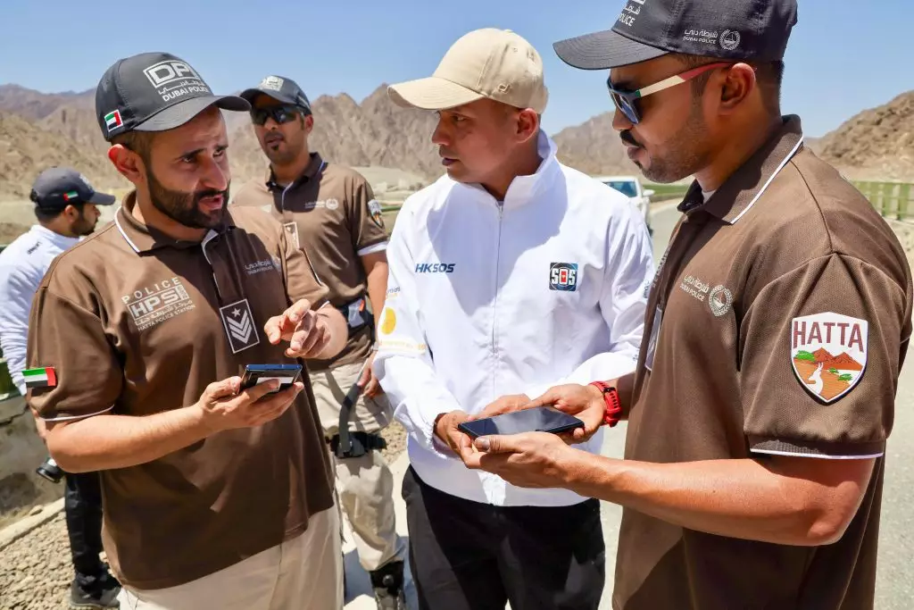 除了參加峰會,警隊亦獲迪拜警方邀請到哈塔(Hatta)的偏遠山區進行 Signal Radar無人機測試,以了解於該獨特地理環境和氣候使用HKSOS協助搜救時的訊號穩定性。測試期間,迪拜警方對此遠距離偵測專利技術大感興趣,並相信此獨特科技能有效地協助他們將來的搜救工作。