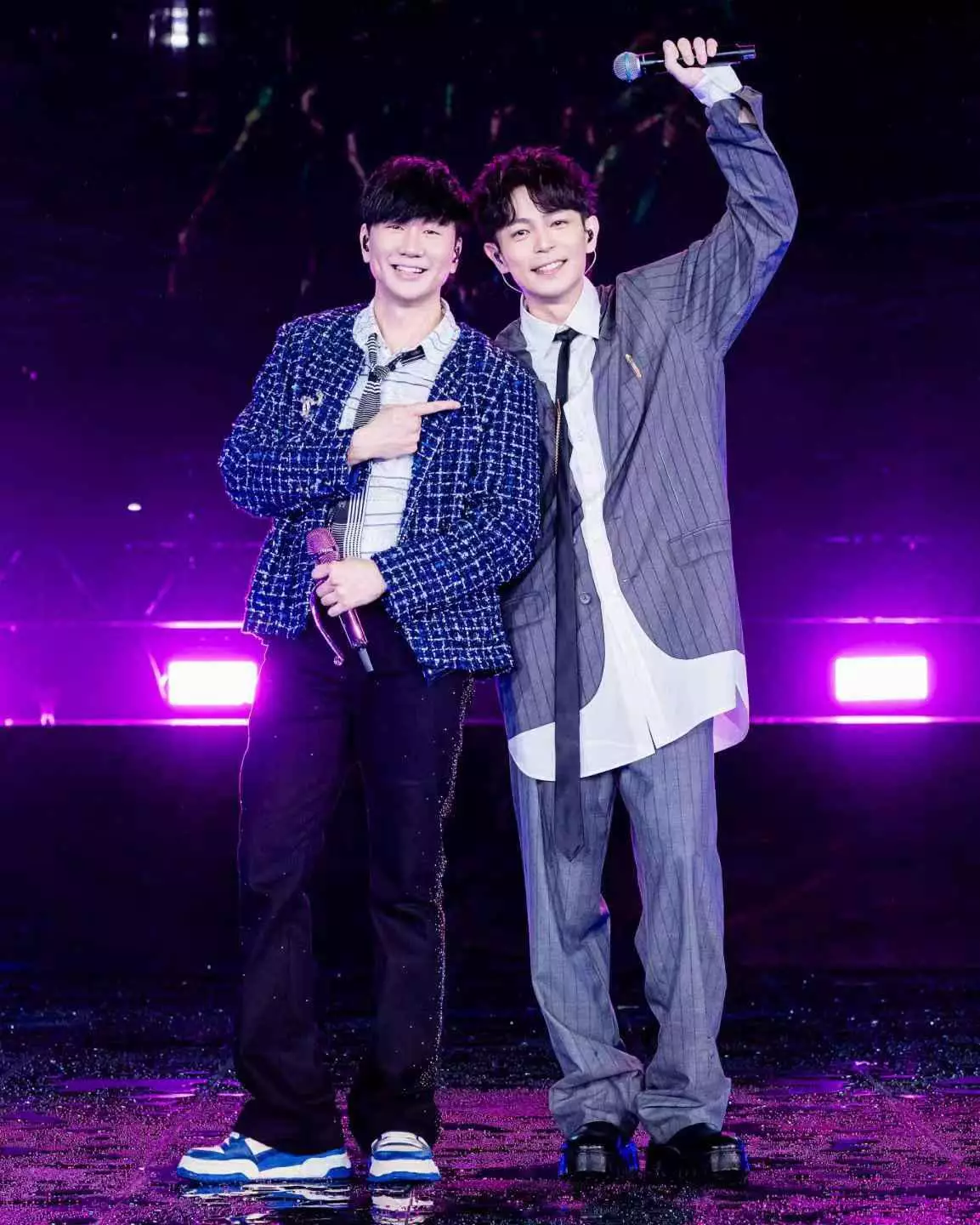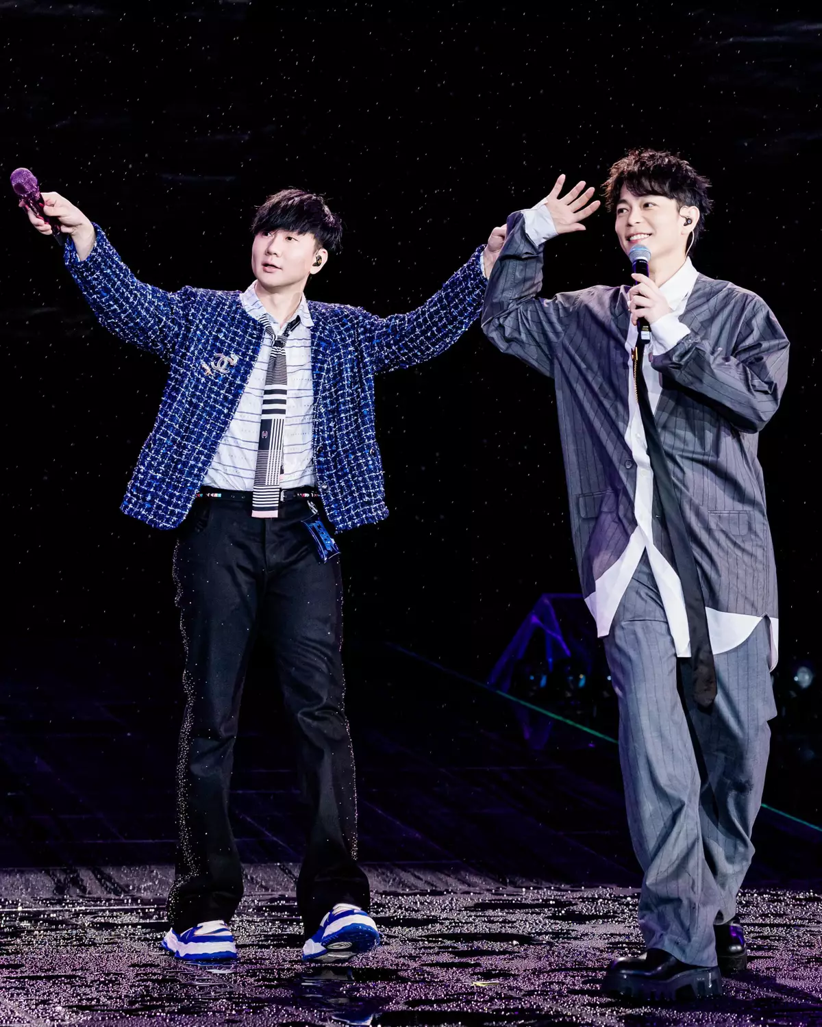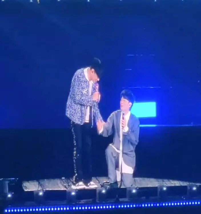 林宇中更在台上突如其來下跪,感性喊出:「我對不起你!」讓林俊傑一臉驚訝,原來是他自嘲看到開演前場館傾盆大雨,感覺自己像「淋雨中」降臨,「但我一登台,雨就停了,我應該是來救場的!」詼諧地打破現場緊張,展現他招牌的真誠與幽默。
