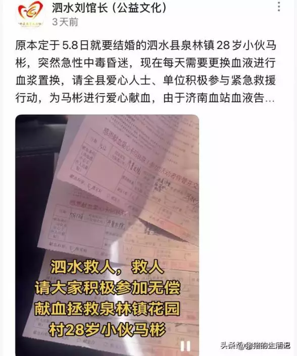 治療期間,當地「泉鄉義工協會」發動社會援助,30餘名濟寧群眾趕赴醫院捐血2萬毫升,泗水縣居民亦主動加入捐血行列。 協會同時在3日內籌得8.2萬元人民幣善款,用於支付高昂醫療費用。
