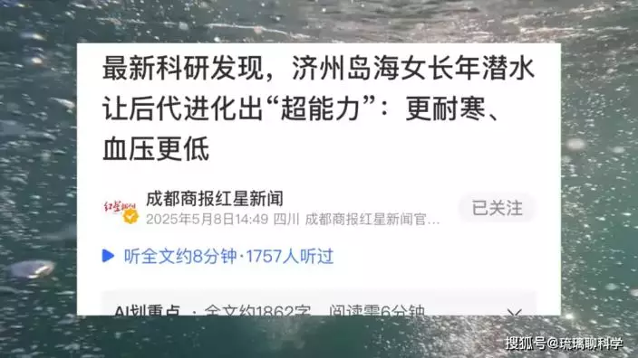 被譽為人類最接近「水下生物」的群體「海女」。據最新研究顯示,她們不僅擁有驚人的潛水能力,基因也在長期的潛水生活中悄然進化。