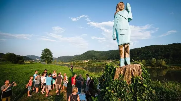 美國第一夫人梅拉妮亞在家鄉斯洛文尼亞塞夫尼察鎮的銅像,近日被發現離奇「失竊」