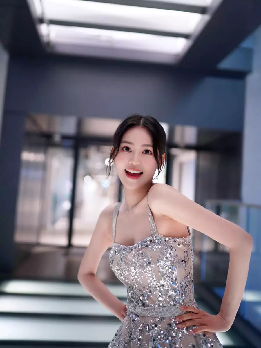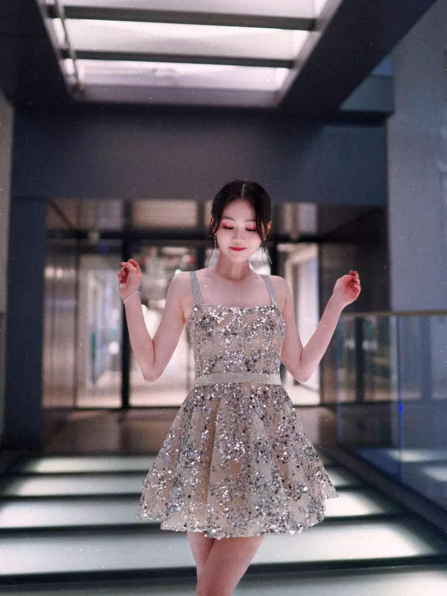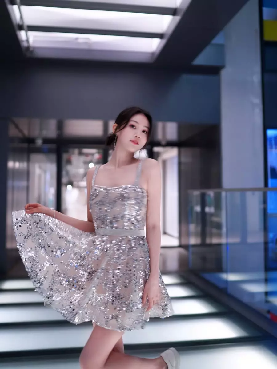 2020年港姐季軍郭柏妍(Rosita)近日在社交平台大派福利,上載一輯身穿銀色吊帶晚裝的靚相,瞬間引爆網絡熱議!這鑲滿閃閃珠片的晚裝完美襯托出她白皙肌膚,在燈光下散發迷人光彩,猶如仙女下凡。