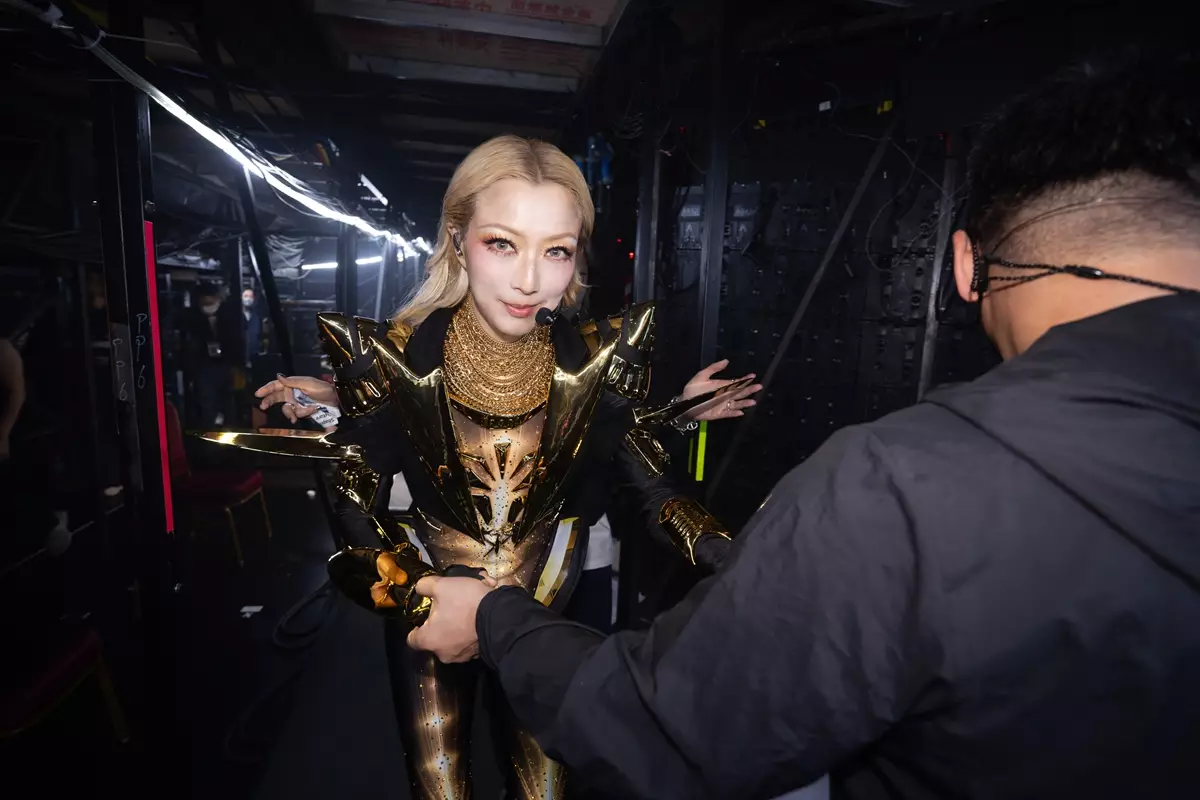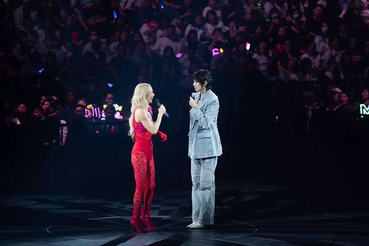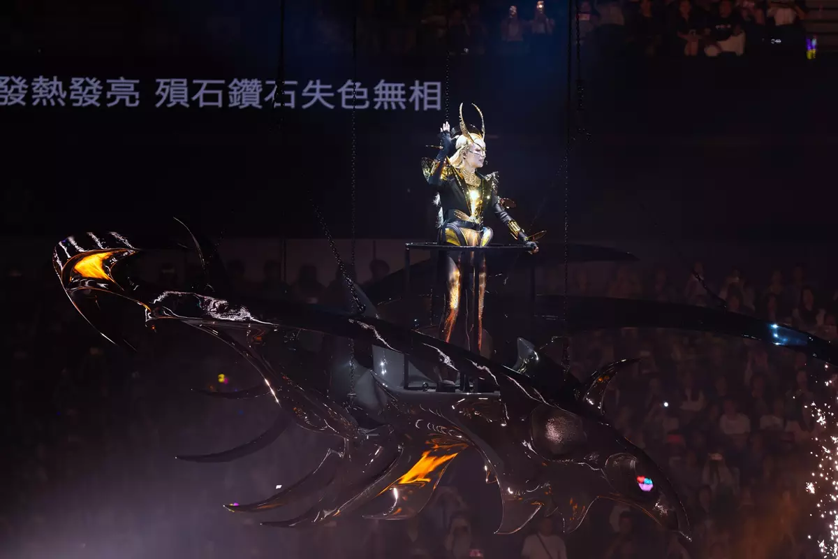 以一身性感紅色蕾絲造型與特別嘉賓王丹妮合唱梅艷芳經典作品《壞女孩》