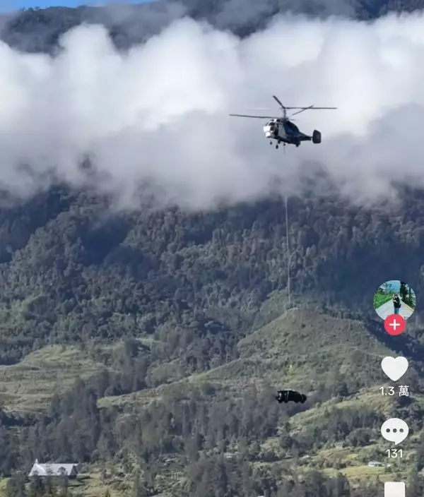 綜合外媒報導,印尼東部巴布亞高原地區一名富豪早前用現金買新車後,因當地地形險峻,運輸困難,遂果斷豪擲重金租下直升機,將新車空運回山中的住處。
