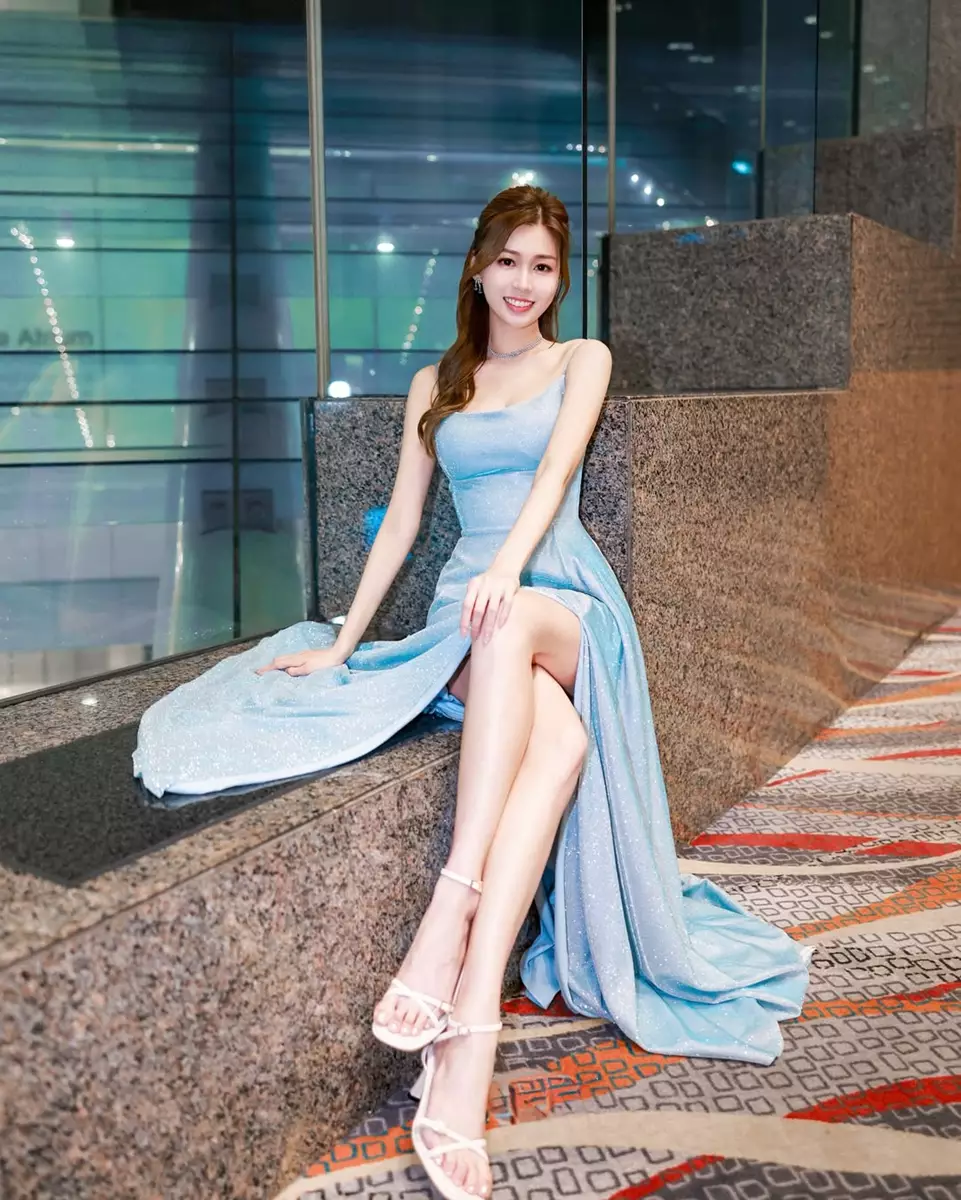 李芷晴今次造型充滿仙氣,藍色晚裝配上精緻妝容,猶如童話公主。她更幽默自嘲是「Cinderella闖進了醉人的宴會」,搞笑之餘又不失優雅。相片中,她以高角度自拍,完美展現修長美腿,加上甜美笑容,難怪網民紛紛留言:「呢個角度太犯規!」、「TVB新一代性感女神!」