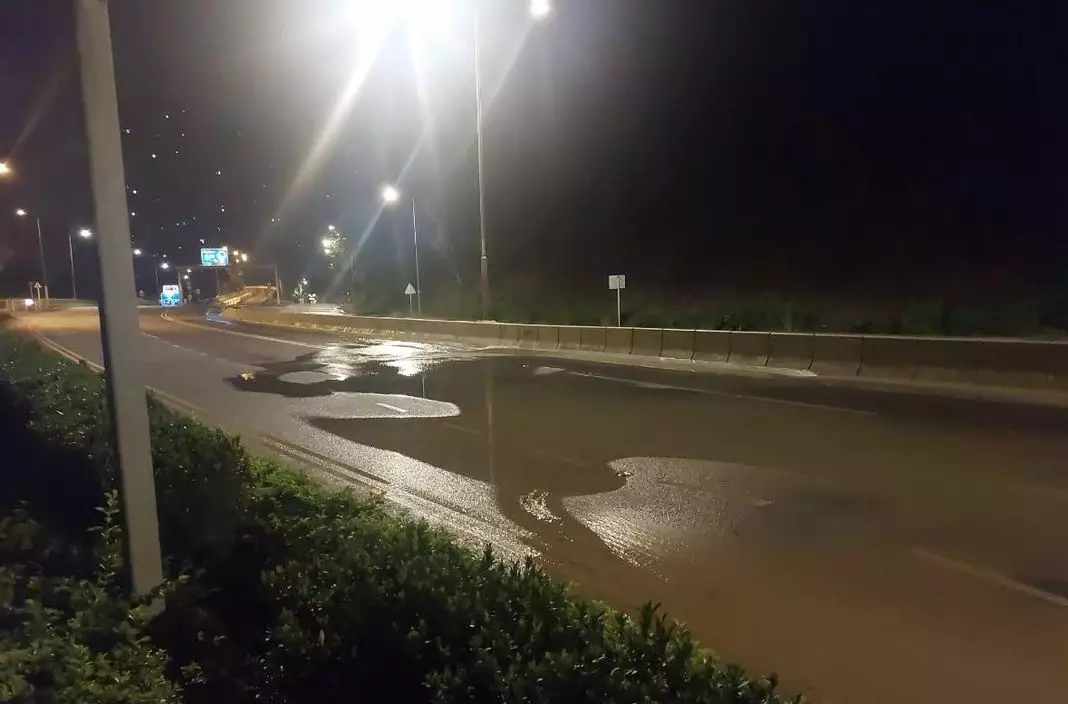 將軍澳環保大道往將軍澳隧道方向有水管滲漏,水務署確認涉及一條直徑900毫米的鹹水供水管。方國珊FB圖片