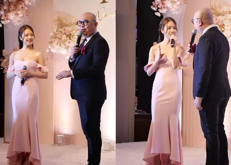 應屆港姐冠軍莊子璇(Hilary)近日秘密進修,向「金牌司儀」林盛斌(Bob)拜師學藝!日前她為一對新人擔任婚禮司儀,事後在社交平台分享工作照,身穿粉紅色一字膊貼身晚裝的她身材玲瓏浮凸,性感程度爆燈,即時搶盡新人風頭! 相中所見,莊子璇以超貼身晚裝上陣,大騷香肩鎖骨,上圍更顯豐滿,與平日選美時的優雅形象截然不同。