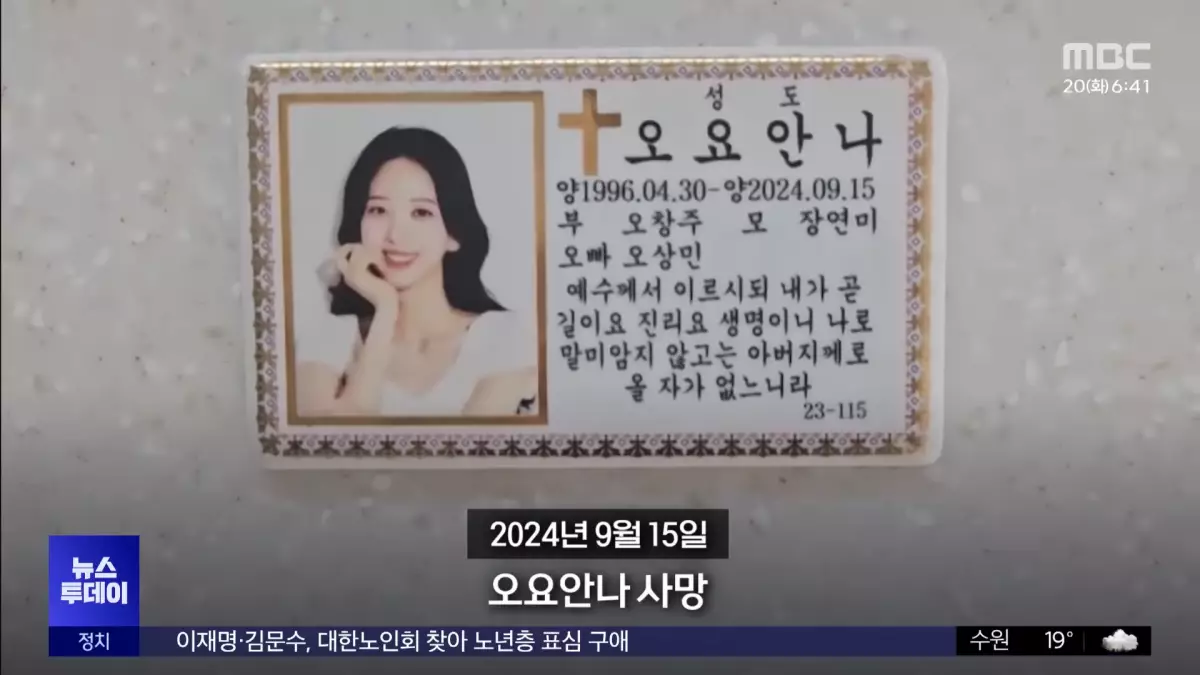 吳瑤安娜在2024年9月離世。MBC新聞影片截圖
