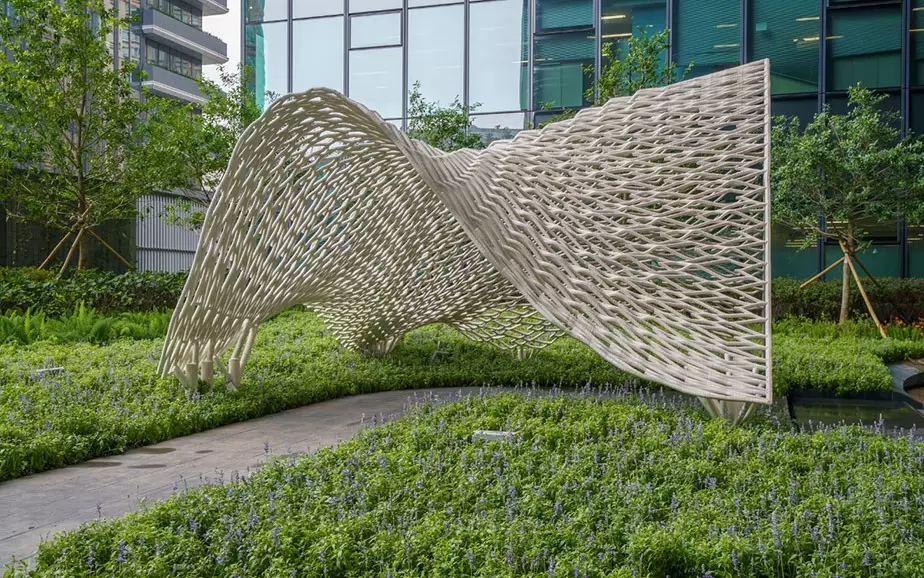 坐落於將軍澳入境事務處總部婚禮花園的雕塑「織 · 愛」,是全亞洲第一個採用3D金屬打印技術的大型戶外建築作品。