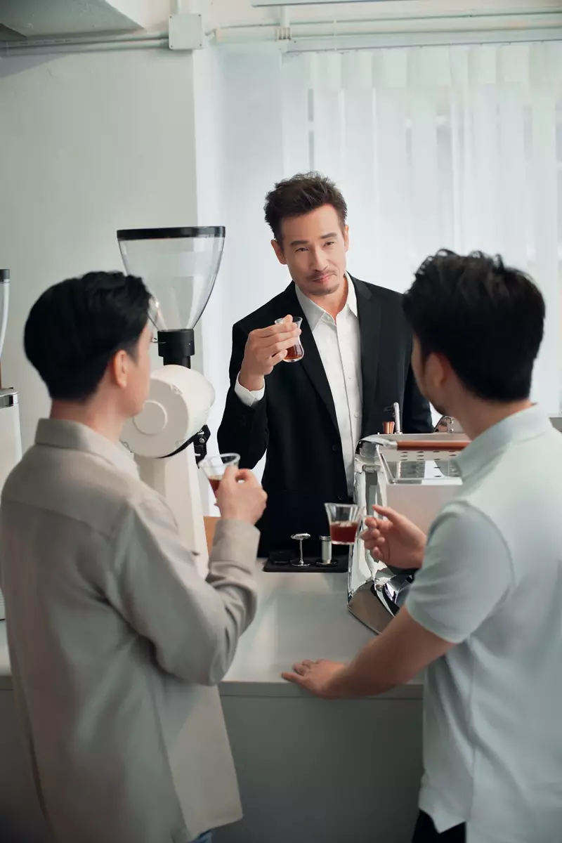 鏡頭外的陳豪(Moses),觀眾覺得他是「型男」外,也會認定他是「咖啡」狂熱份子!近日Moses為男士服裝品牌DETERMINANT Premium Series白恤衫拍攝新一輯廣告,還將日常傾生意的情境搬上大銀幕,展現他追求極緻的一面!