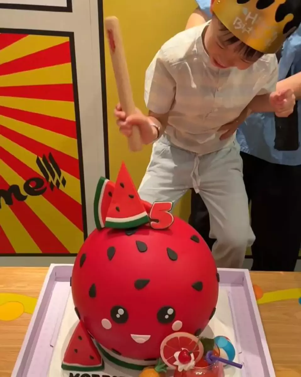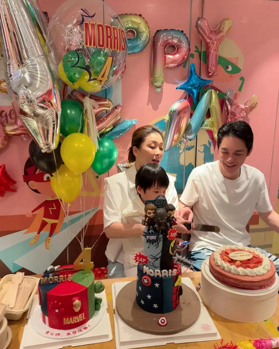 Niki在IG分享為囝囝Morris舉行生日派對的相片和影片,並留言:「眨吓眼五歲了,繼續做個開心,善良溫暖的男孩,健康快樂成長!Love u my boy !」影片中可見,Morris拿着木棍用力敲西瓜造型的蛋糕,期間爸爸一直從後扶Morris,敲開蛋糕後,Morris即急不及待用雙手拿起裏面的糖果分給在場的其他小朋友,逗得爸爸媽媽哈哈大笑!Niki還分享了一家三口的合照,雖然用了心心貼紙遮着囝囝的正面,但見到Morris臉形似足爸爸,而且手長腳長,相信是個小帥哥!