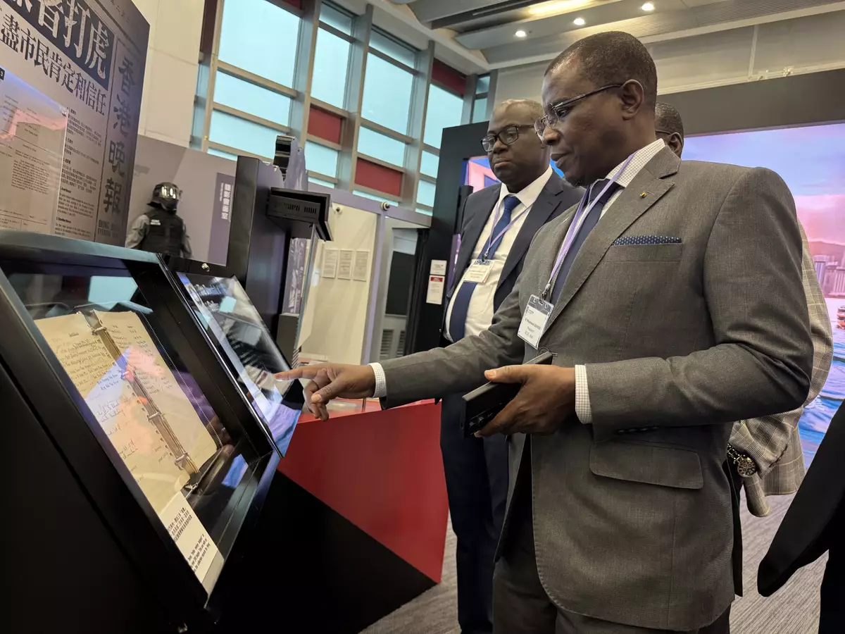 非洲馬里打擊非法致富辦公室考察代表團參觀廉署展覽廳,體驗嶄新宣傳設施。廉政公署圖片