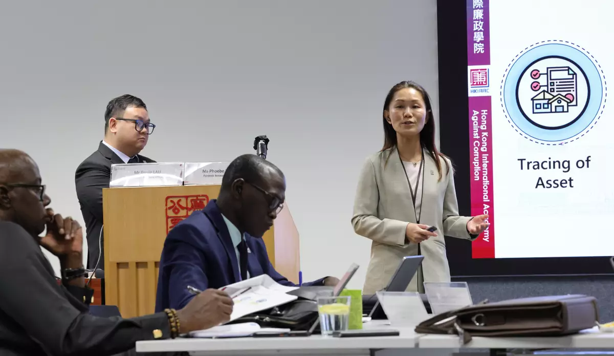 廉署人員(右一)與非洲馬里打擊非法致富辦公室考察代表團分享財務調查及追逃追贓的經驗。廉政公署圖片